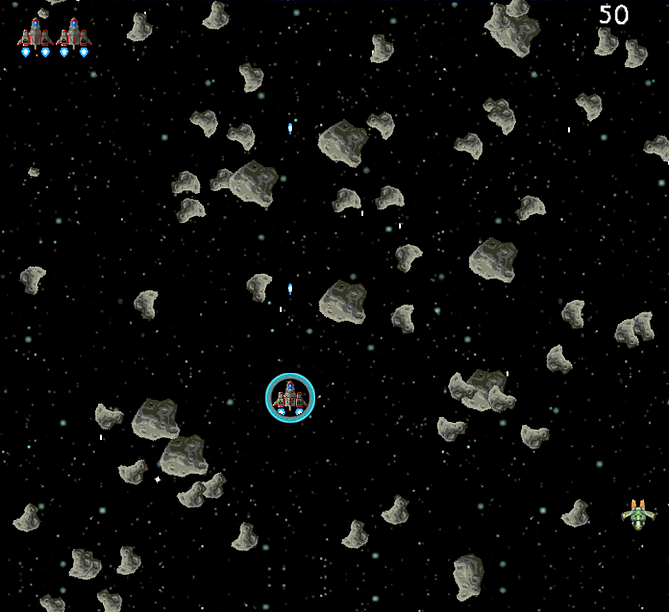 The main aim of the game is to survive for as long as possible against an unrelenting enemy. The player gains points by killing enemies and will receive a life each time they acquire 100 points. Additional hazards such as asteroid fields or alien fleet attacks aim to challenge the player and get progressively harder as the game goes on. The game ends when the player runs out of lives.